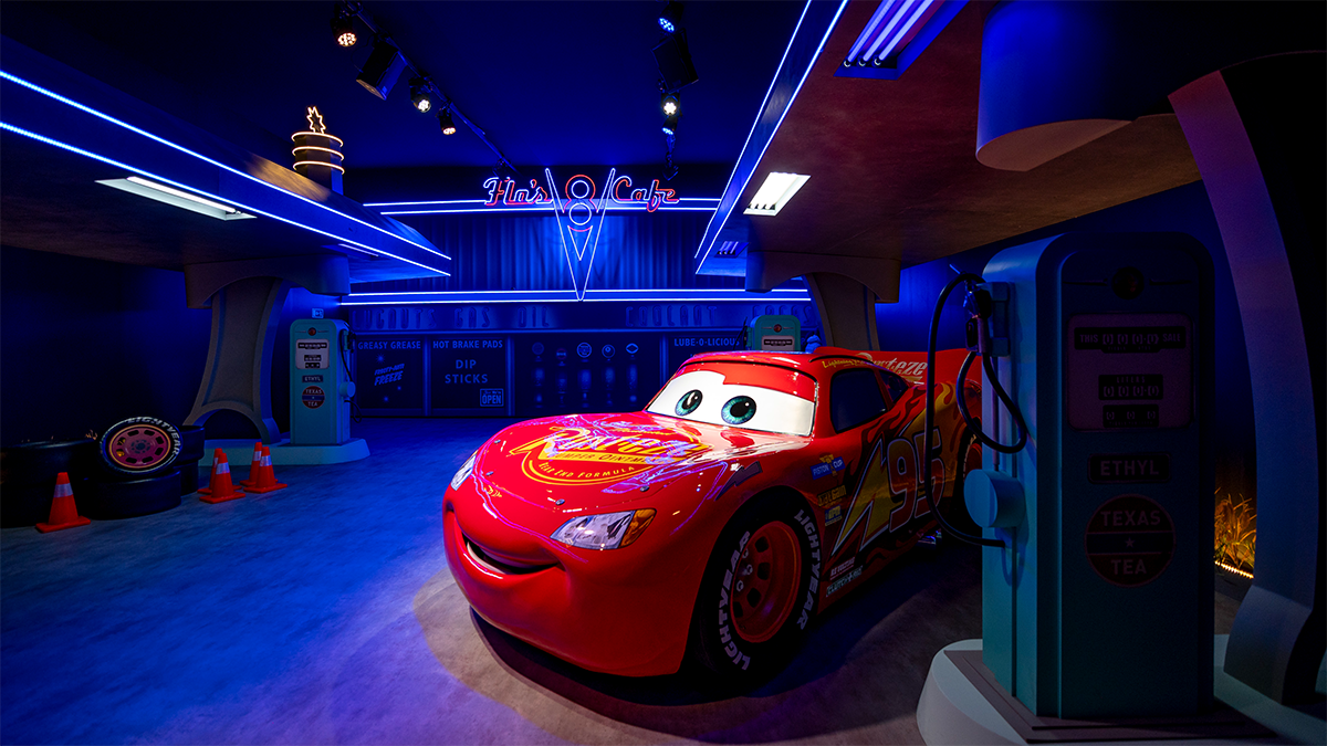 ofLightning McQueen at Flo’s V8 Café display.